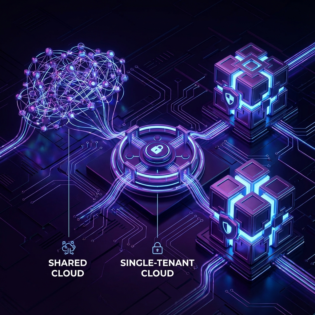 In a shared cloud or multi-tenant architecture, your data lives in a massive, centralized database alongside data from thousands of other companies. Logical separation exists (row-level security in databases), but you are fundamentally sharing the same underlying infrastructure—the same compute nodes, the same memory space, and often the same vector indices.